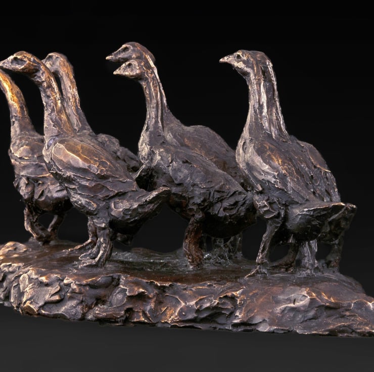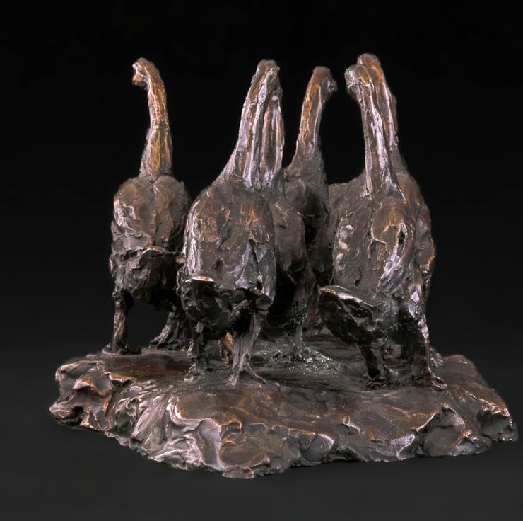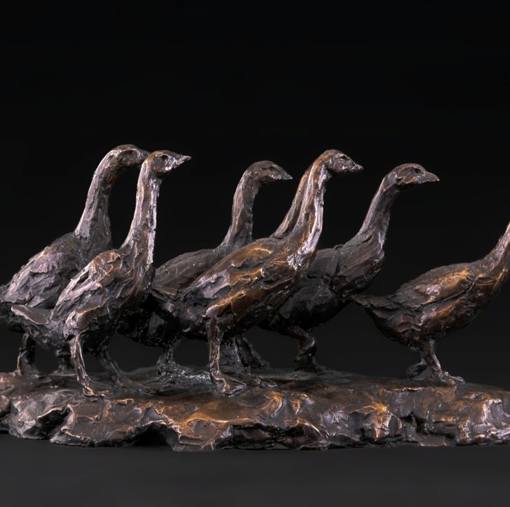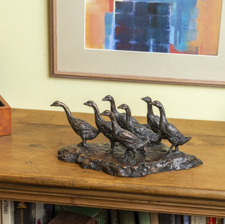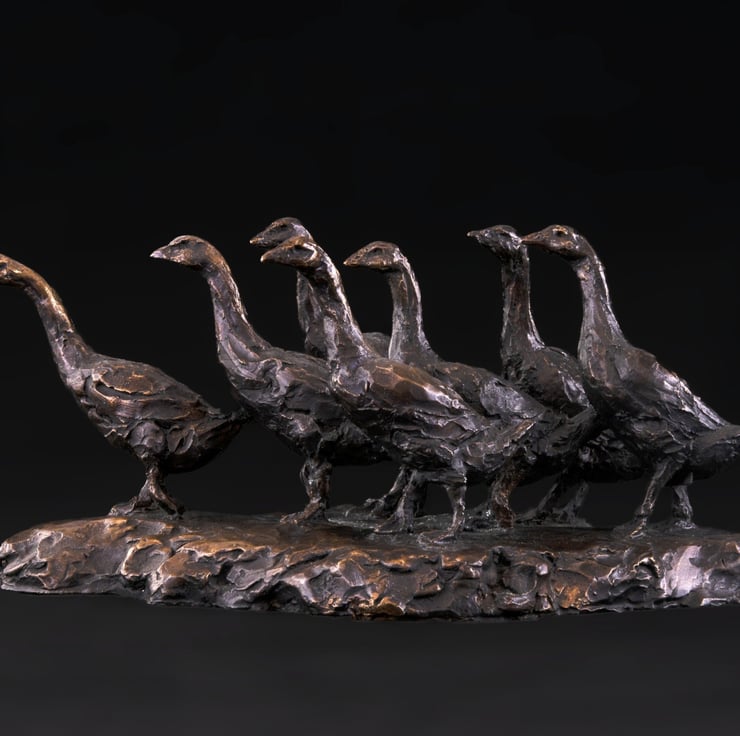 The Gaggle of Geese sculpture is one of my earlier artworks. When I was young my Mum used to take my sister and I to a stud farm in Wales where geese were kept as guards. They used to chase anyone they perceived as a threat (including me!) My new studio is on a Welsh hill farm, so I occasionally wonder whether I should have geese. Though I admit the thought is often short-lived. Dogs are much safer!