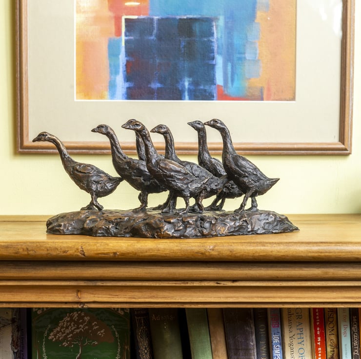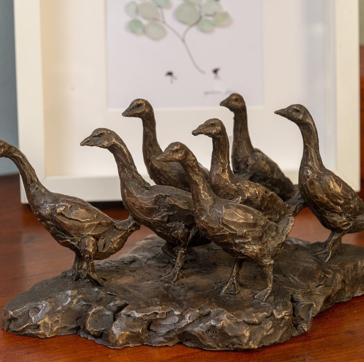 Every one of our bronze animal statues are beautifully packaged with care in tissue paper and our smart, branded Tanya Russell bags. The perfect collectible for art and wildlife fans, your Gaggle of Geese gift will be shipped to you double wrapped for extra protection. We ensure that all our packaging is recycled or recyclable wherever possible and carbon-offset with tree planting.