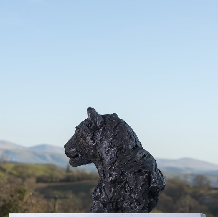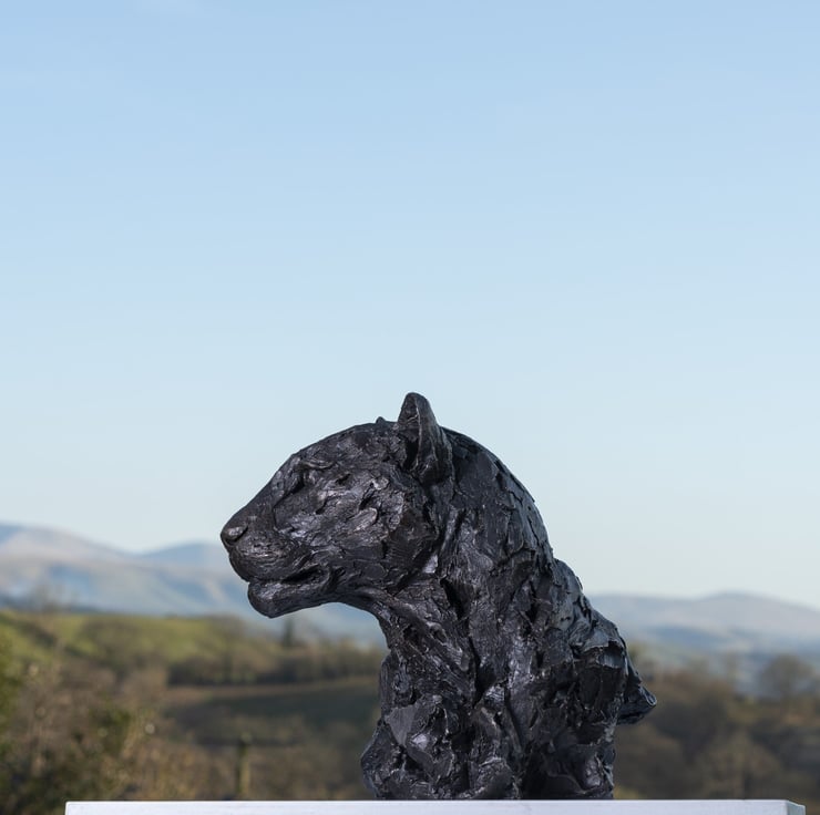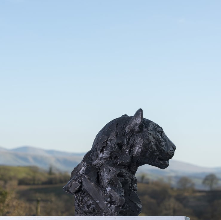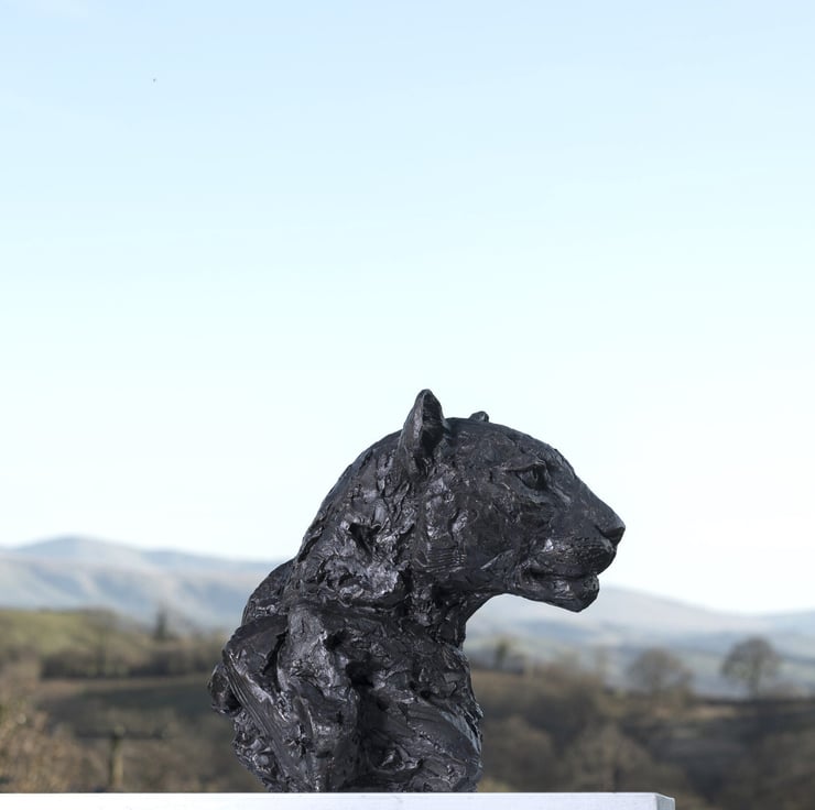 "I’ve been performing commissions for many years, and occasionally I have an opportunity to sculpt something entirely for myself. I’d previously modelled a leaping leopard and had loved sculpting these beautiful predators. I wanted to model a portrait only, to capture the stunning lines of the leopard’s neck and head, and to develop my personal artistic style. I particularly pushed the darks and rough unexpected planes, to create marks that were unnatural, yet appropriate."