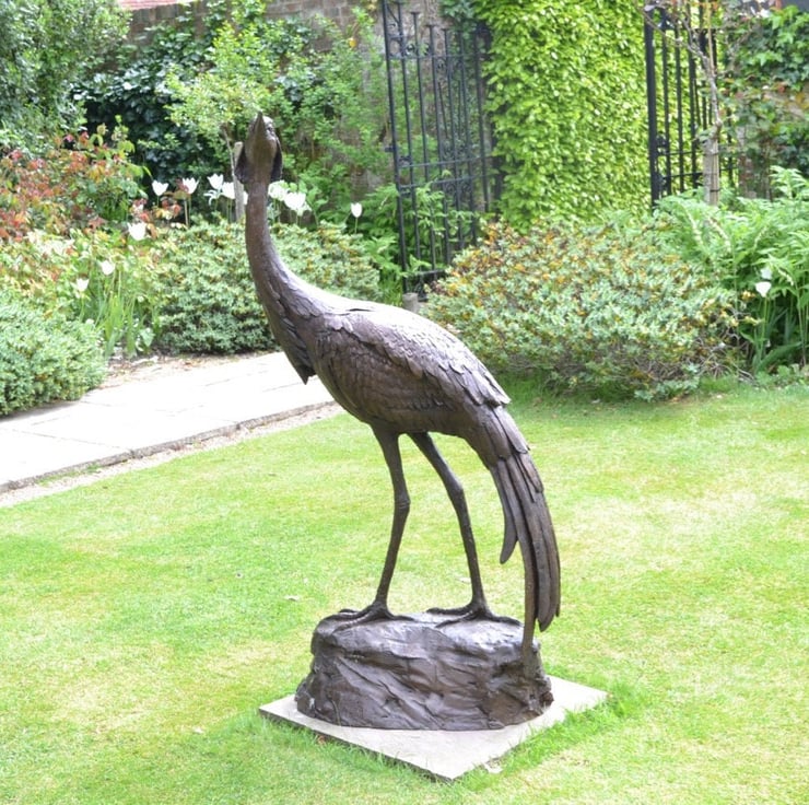 "The Walking Crane sculpture was originally a commission for a public atrium in Canary Wharf. Since, editions of this sculpture have worked very well in all kinds of large and more intimate garden spaces."