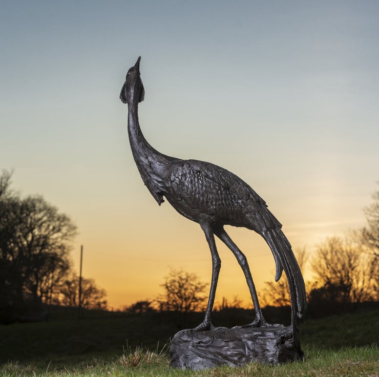 Your large bronze crane sculpture will be packaged with care and include our premium, embossed Tanya Russell certificate box and cleaning kit. The perfect collectible for garden art and wildlife fans, your Walking Crane statue will be shipped to you double wrapped for extra protection. We ensure that all our packaging is recycled or recyclable wherever possible and carbon-offset with tree planting.