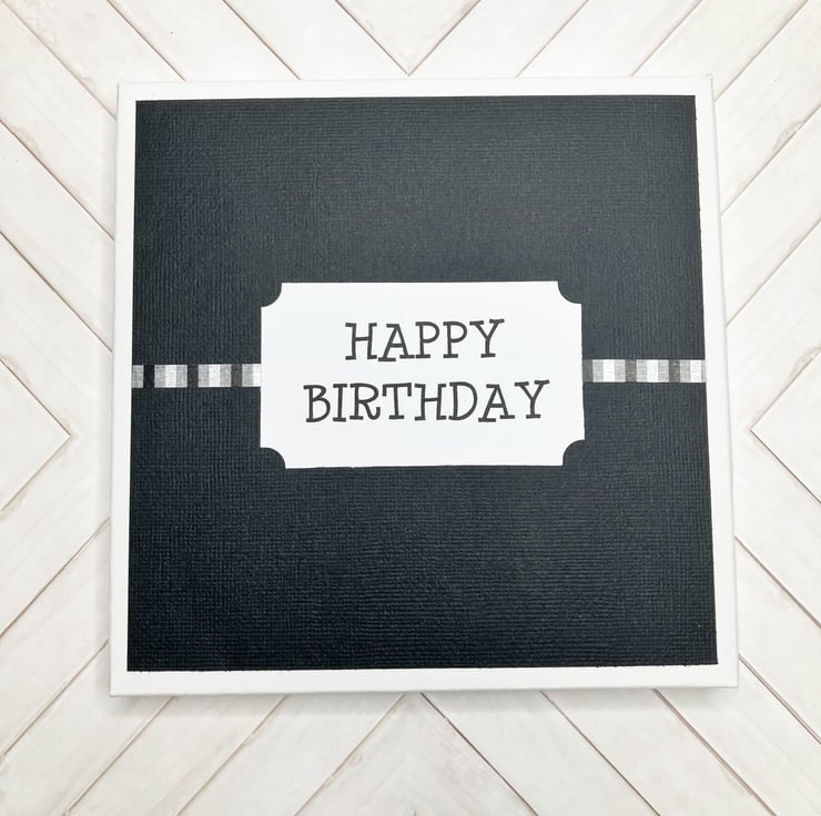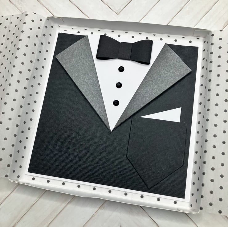 If you would prefer your card to be wrapped in black polka dot tissue paper and presented in a gift box then you can select that option instead. The box measures 16 by 16cm and is 1.5 cm deep approx so it can be posted Large Letter which fits through most letter boxes.