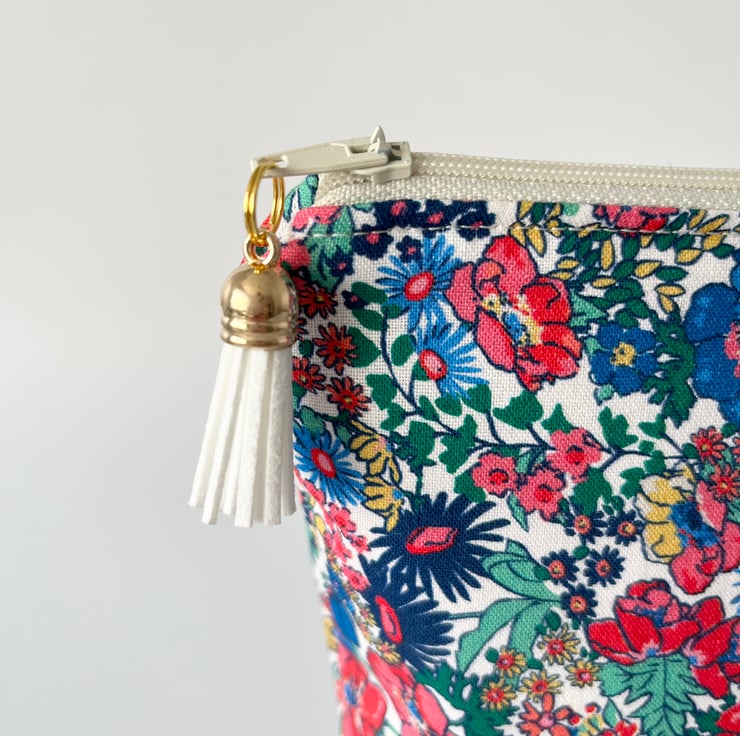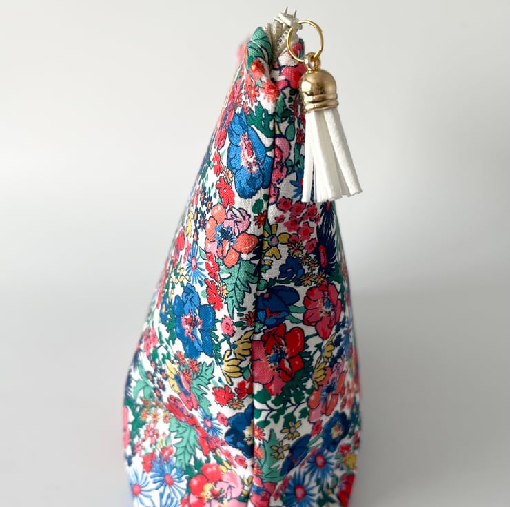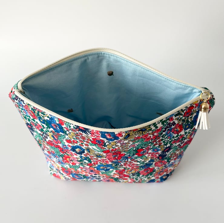 This large cosmetic/toiletry bag is made with a pretty Joules fabric in a floral design on the outside and is lined with a co-ordinating joules fabric.