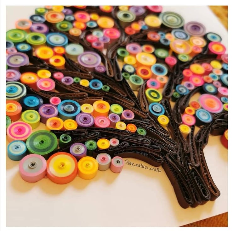 Since taking up the hobby of quilling in 2021 I've not been able to stop! With lots of practice I started making things that made me happy trees being one of those things due to my love of nature and walks. Add a little colour and there we go super colourful tree that took many many hours to create but absolutely worth it.