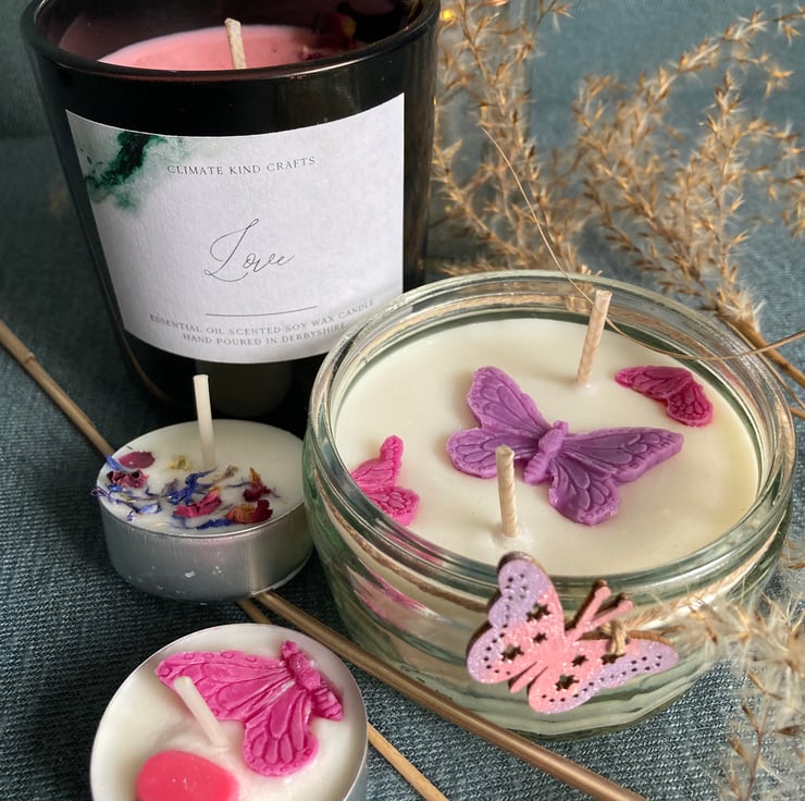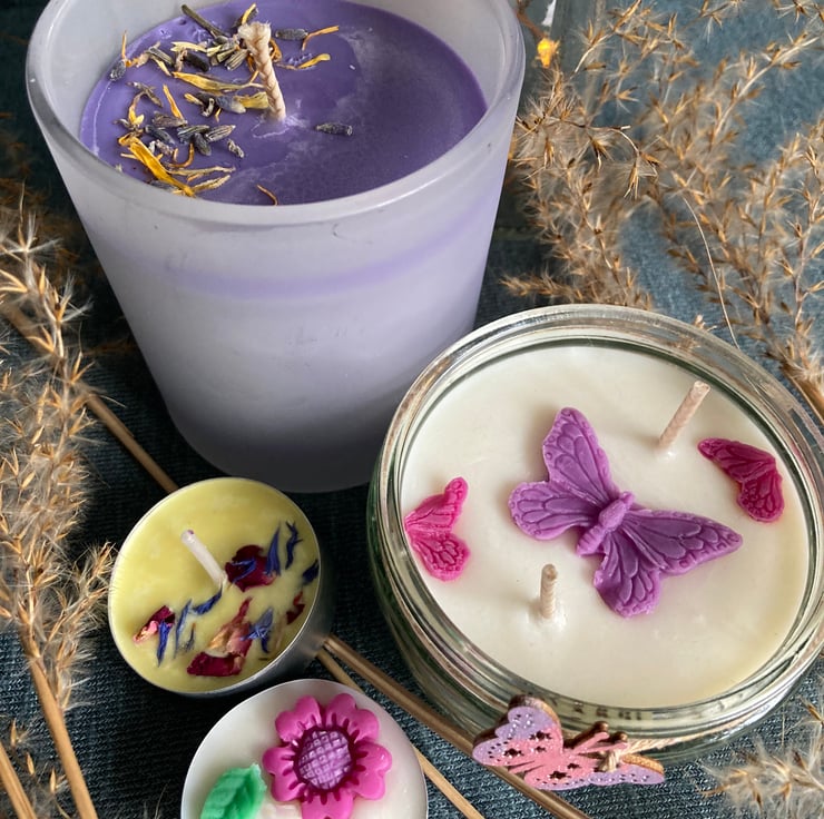 2 x Fragranced, decorated soy wax tea lights