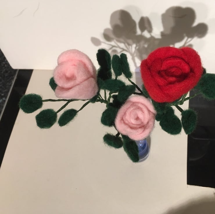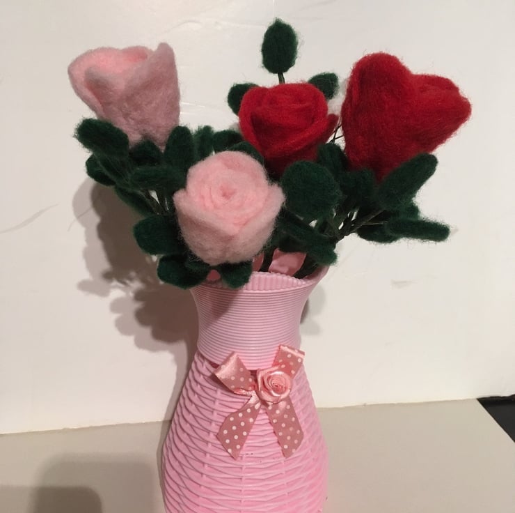 For sale Beautiful handmade roses ...Made from pure wool upon a wire stem and delicate leaves with the art of needle felting....Perfect gift long lasting no watering also perfect for all hayfever suffers.... listing prices are for a single rose message me if multiple roses required