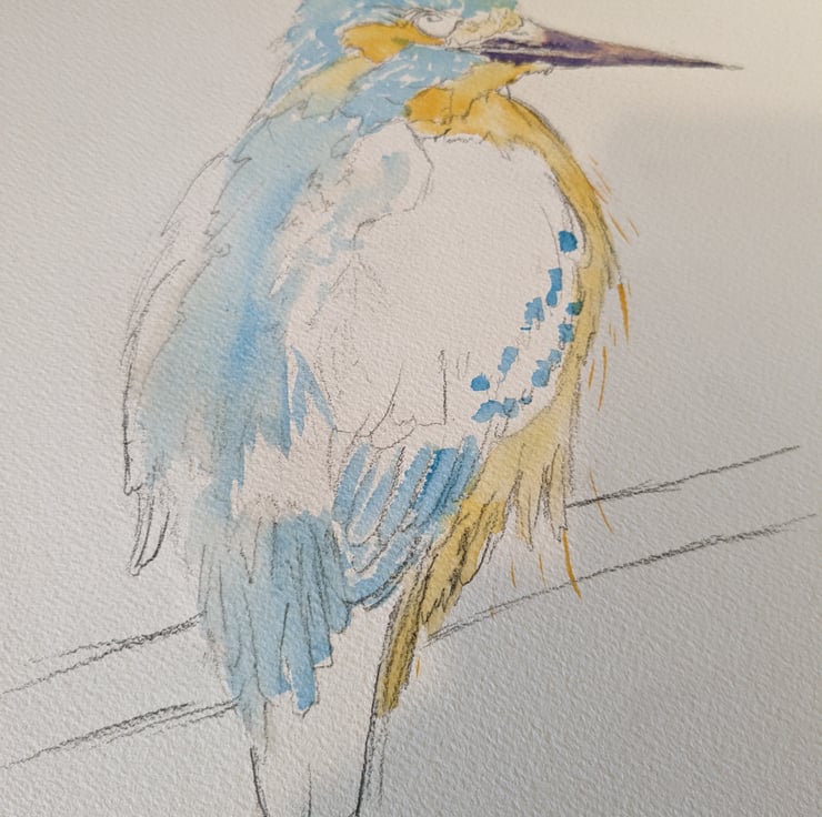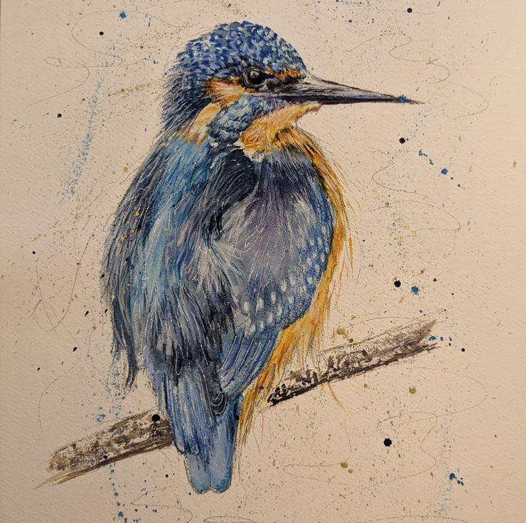 I was inspired to paint a Kingfisher after I caught a fleeting glimpse of one on a visit to a local Shropshire nature reserve. I also had an urge to try out some new beautiful watercolour paints I had recently acquired and brighten up a dull January day by painting something colourful !