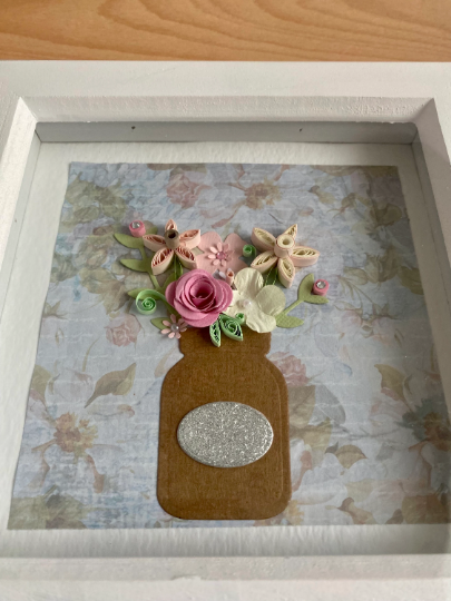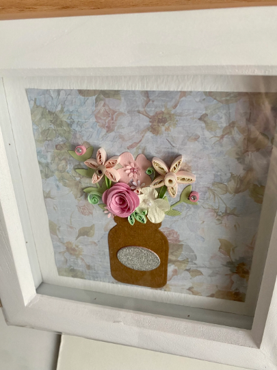 This Paper Quilling picture comes framed in a White Shadow Box Frame
