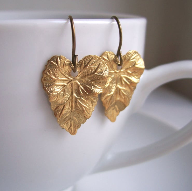 These beautiful naturalistic little leaves are golden brass.