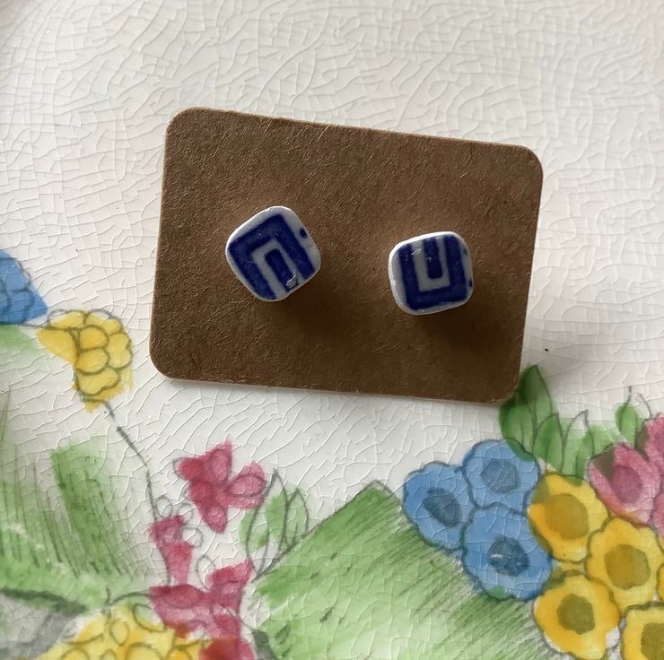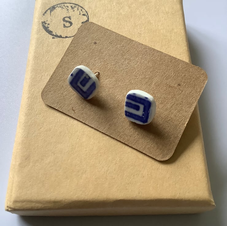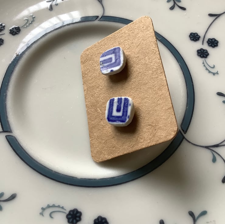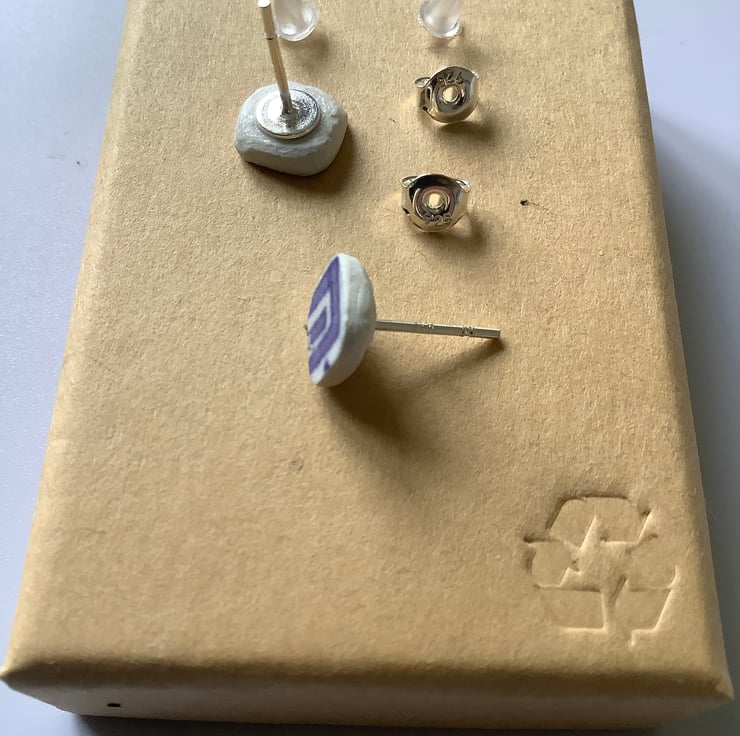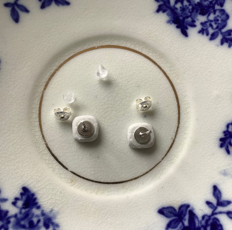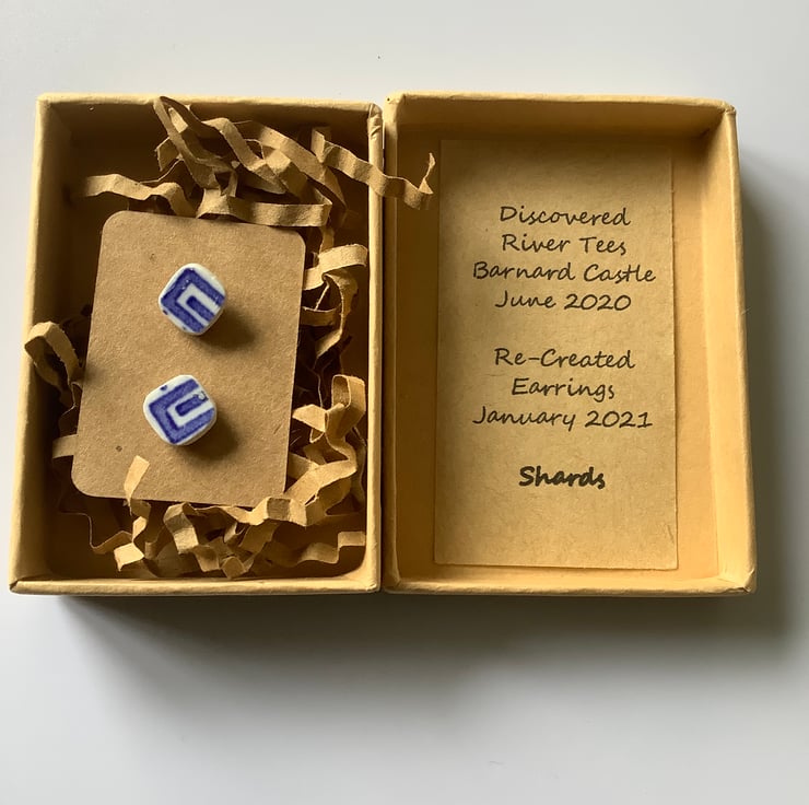 These earrings are created from ceramic that has lived a life, ended up in the River Tees and now living again as jewellery.
