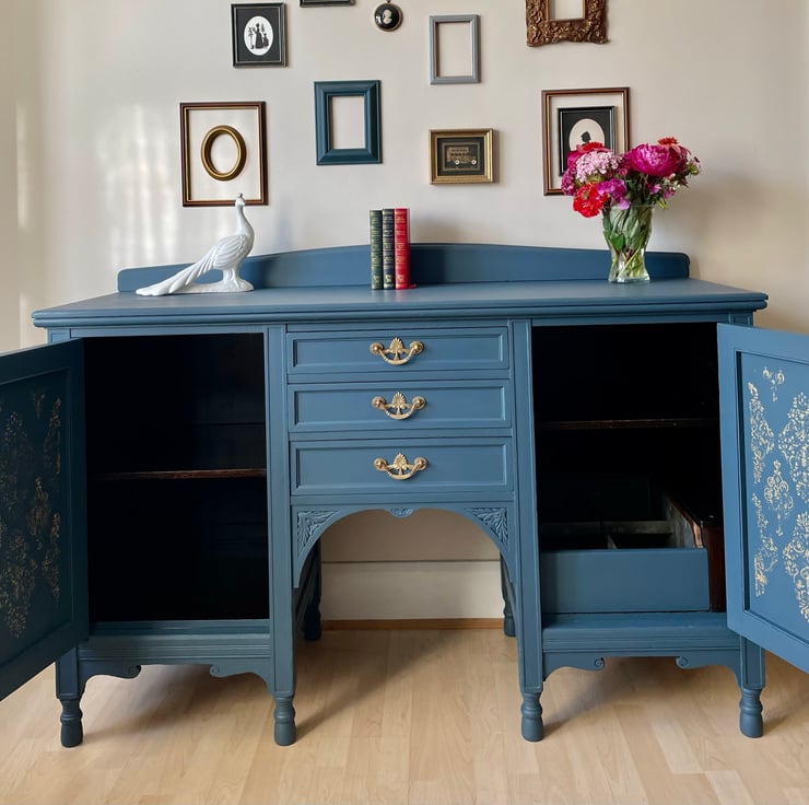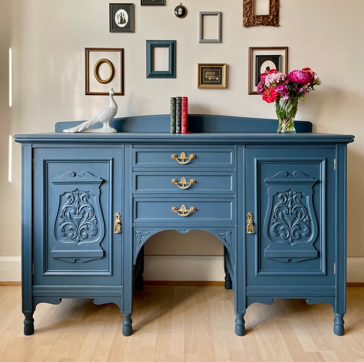 Hand Painted in Annabell Duke Mineral Paint in Port Royal and finished with Clear Soft Wax and Gilding Wax !