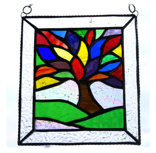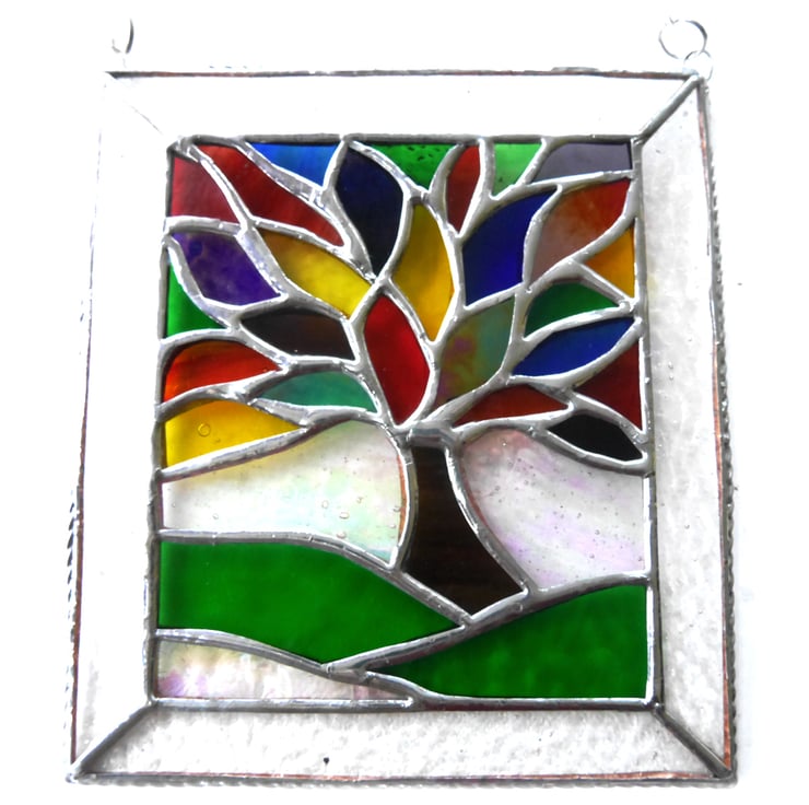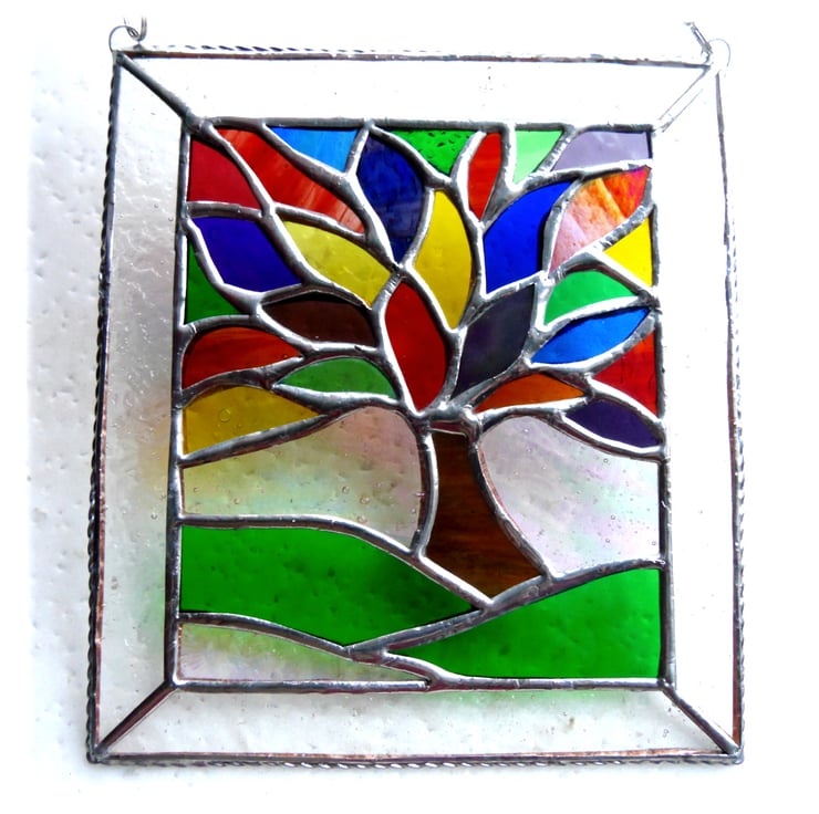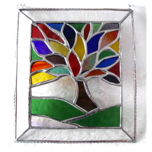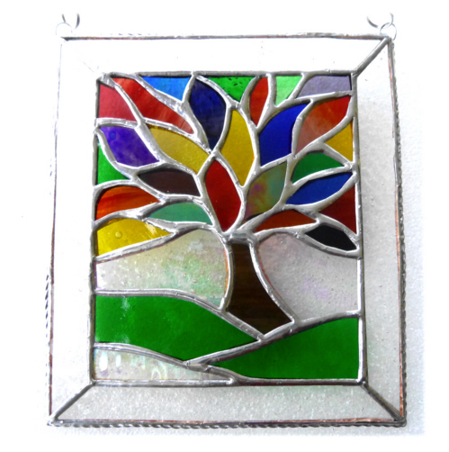 Rainbow Tree of Life Suncatcher Leaf Stained Glass Picture 011