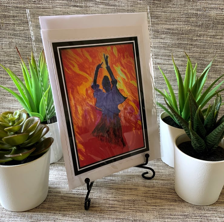 A good quality print of of my original painting. Printed on high quality art canvas card and framed on an A5 Gift card.