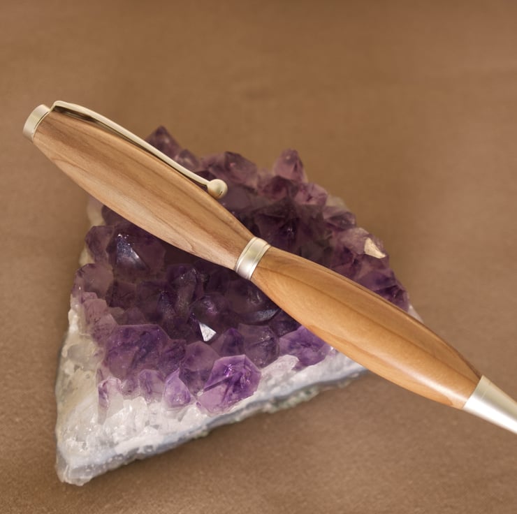 This lovely wood pen is hand crafted from yew wood. The wood for this slender pen came from a storm damaged tree that was reputed to be several hundred years old, and has spent the last 20 years seasoning in my workshop.