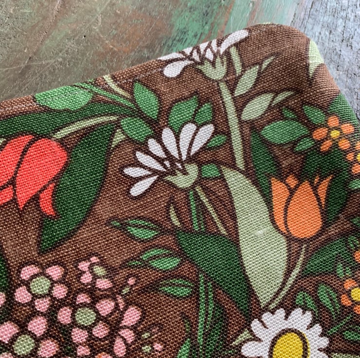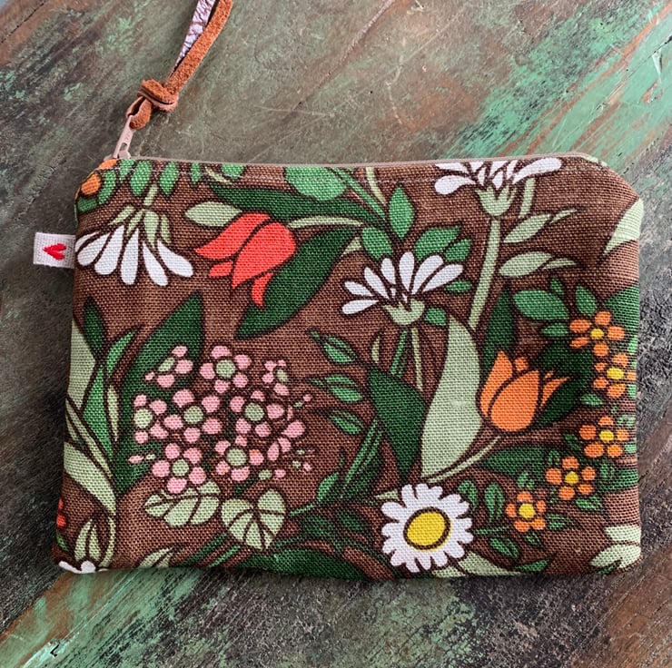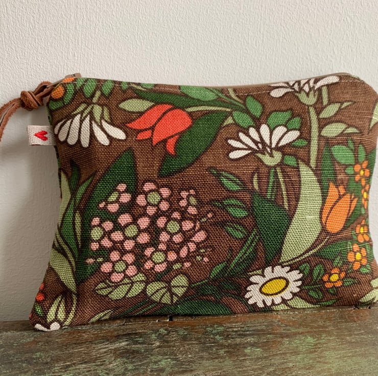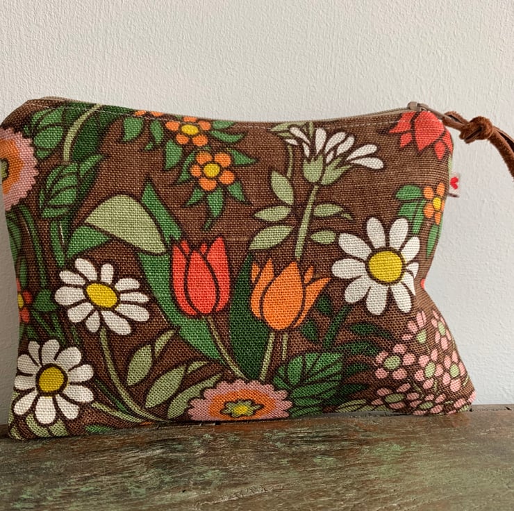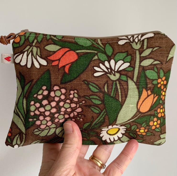 Pretty vintage floral pouch in seventies Jonelle Flower Waltz linen mix fabric.