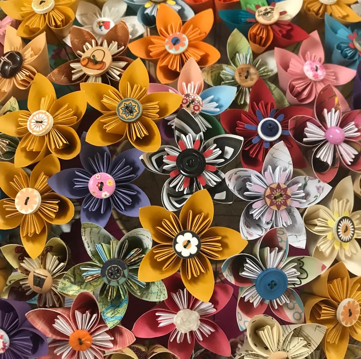 This ‘have-a-go’ paper flower kit enables you to create three kusudama paper flowers.