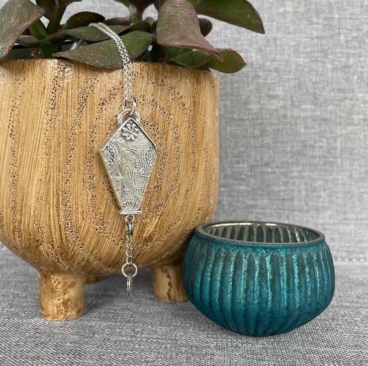 A stunning statement fine silver pendant in the style of a birdhouse. It sits comfortably low on a 22inch sterling silver chain.