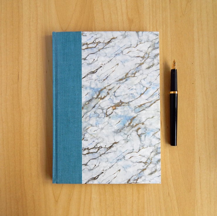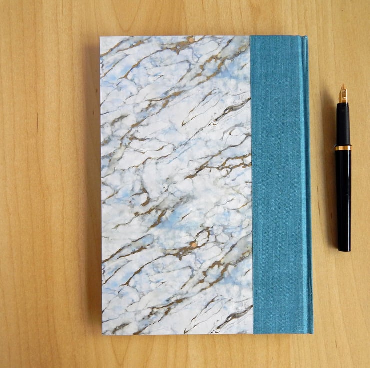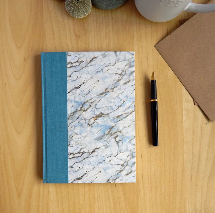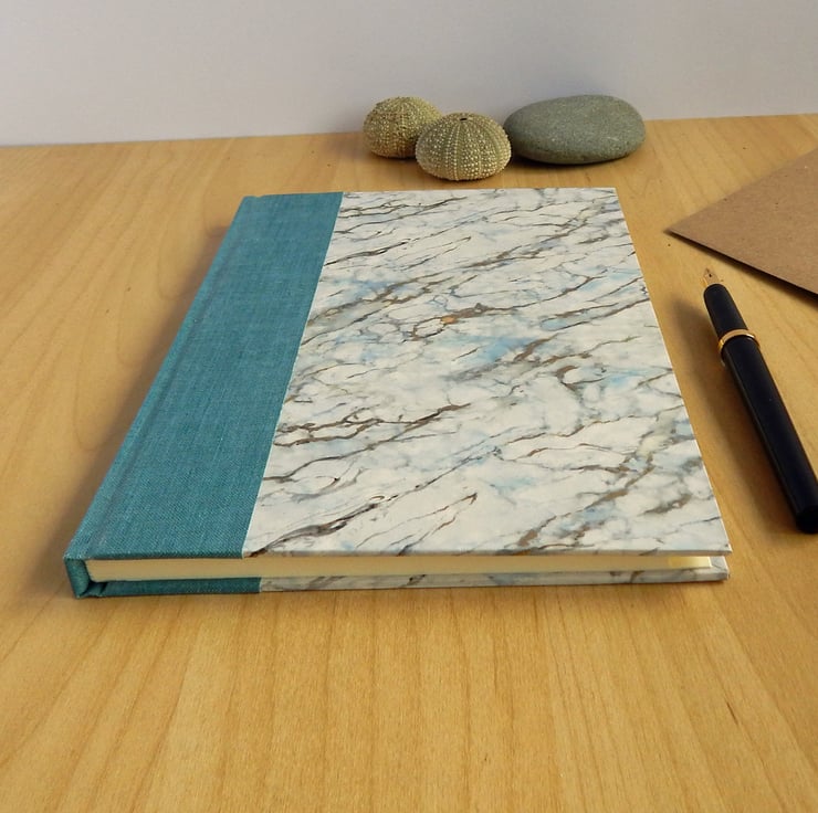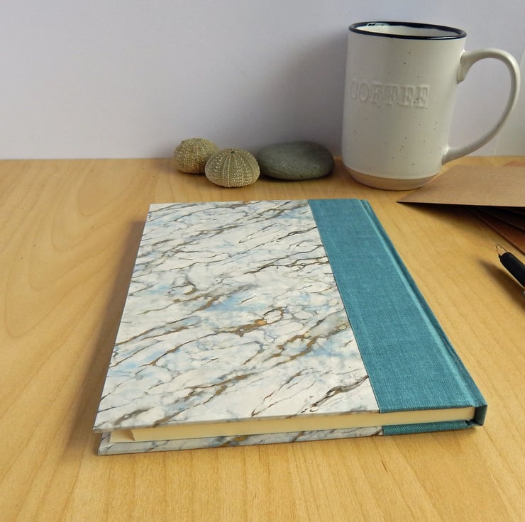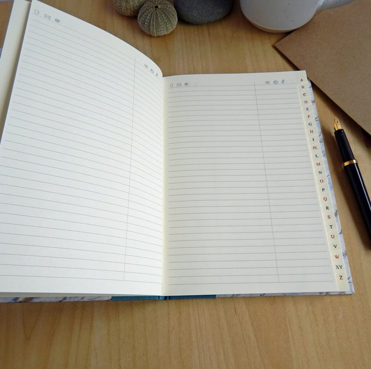 A5 traditional style Address Book with Carrara marble design and aqua blue cloth trim. A great gift for a friend or relative, but also a lovely item for yourself.