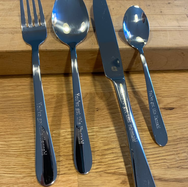 Ideal for that special person in your life. Add that special touch to your dining experience with your name engraved on each piece of cutlery using a traditional diamond tipped engraving cutter resulting in a flawless finish which will last a lifetime.