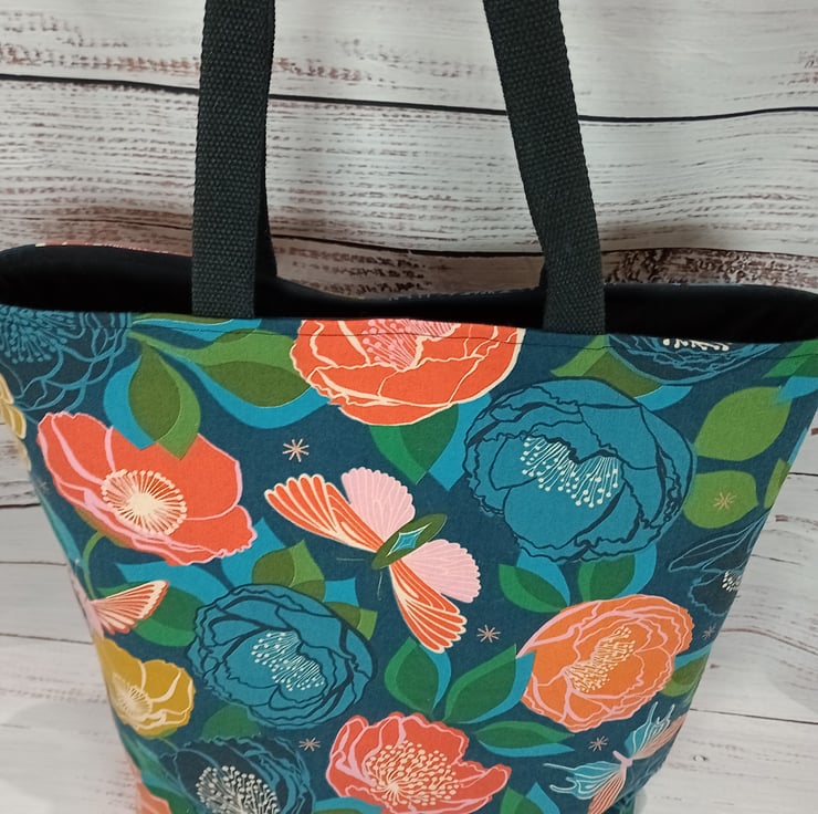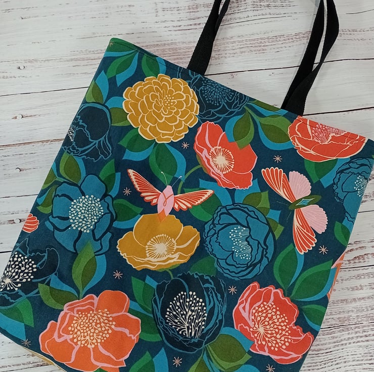 Beautiful flowers, moths and butterflies canvas tote bag. Postage is included in the price. The bag will be sent 2nd class via Royal Mail.