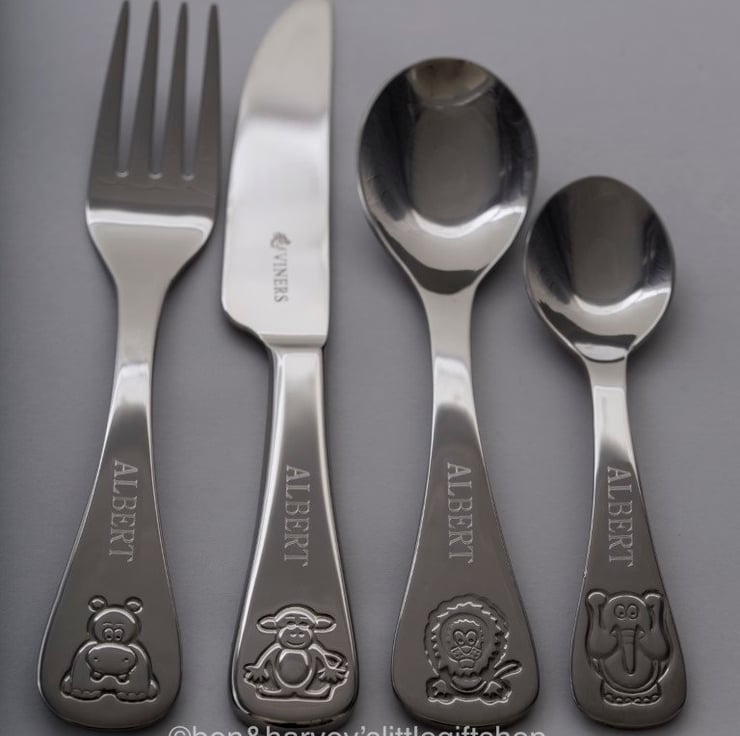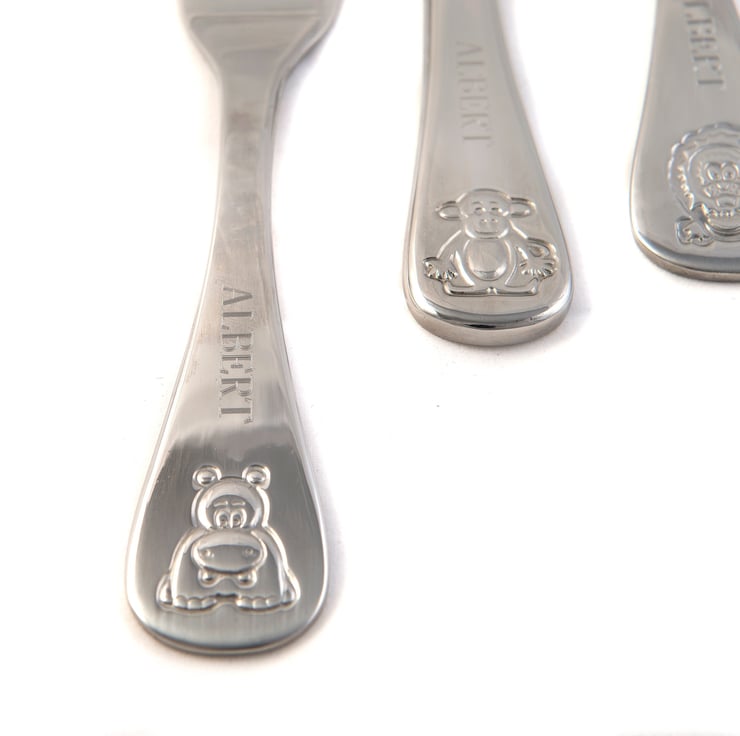 They feature a beautifully embossed animal design of a Hippopotamus, Lion, Monkey and an Elephant on each handle.