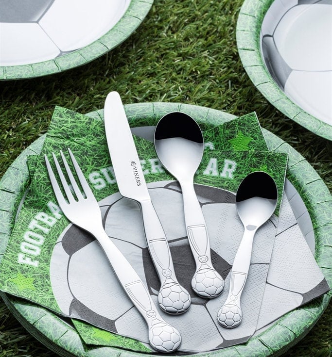 They feature a beautifully embossed Football and trophy design on each handle.