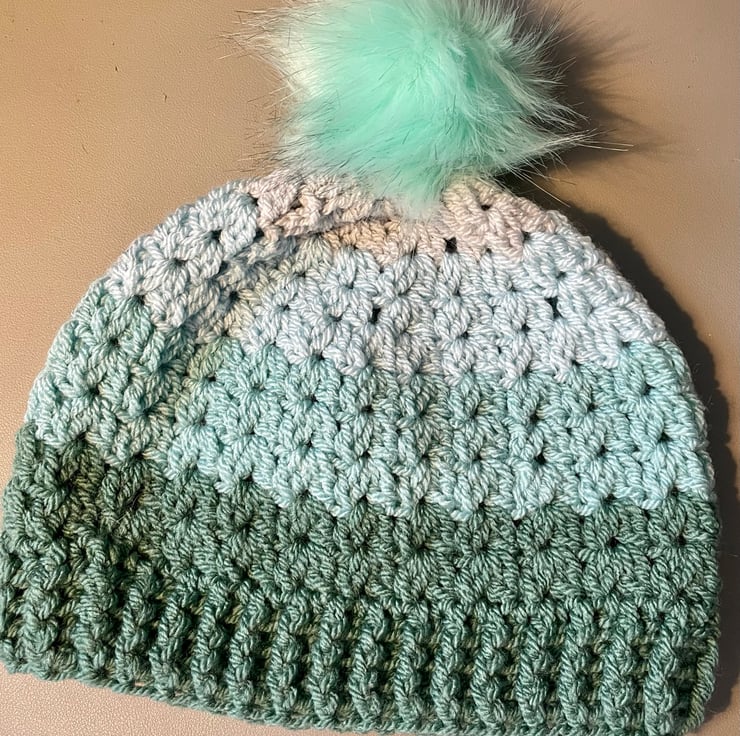 Green colour with mint green pom-pom.