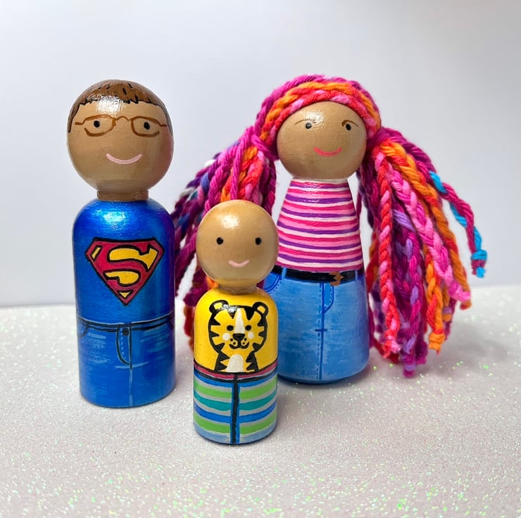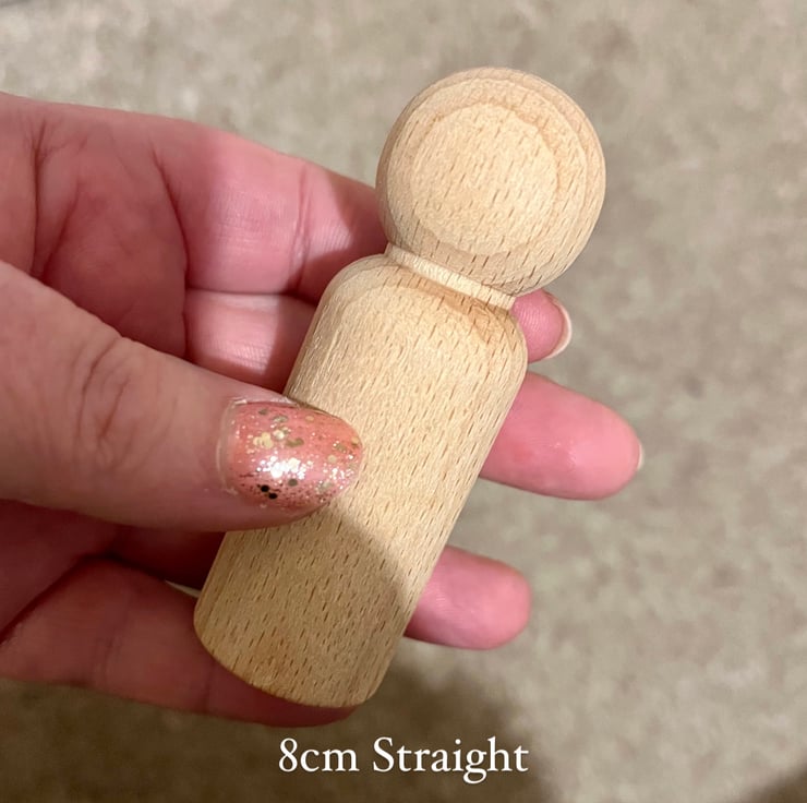 This size peg works well for stand alone customised peg dolls and as the adult in family peg doll orders.