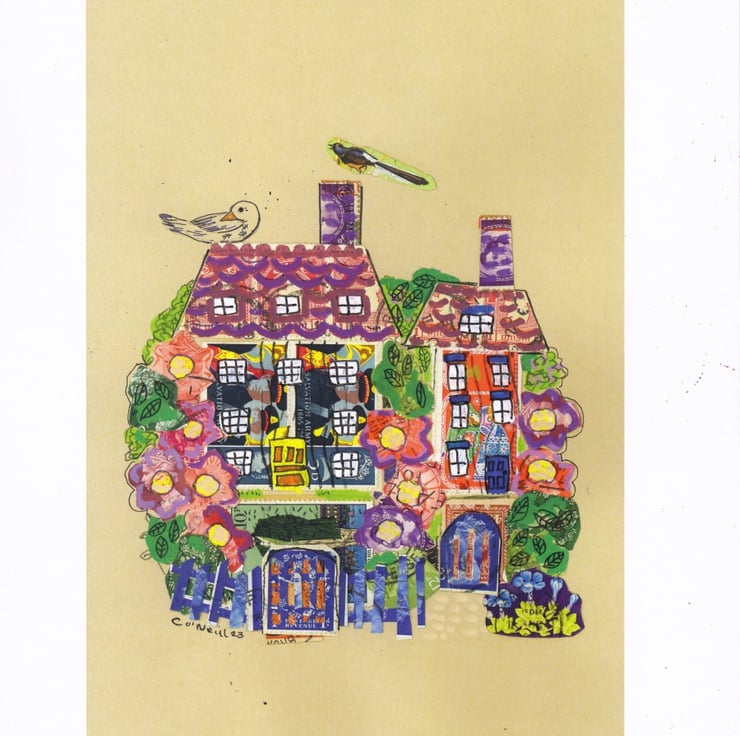 Large House and Little Neighbour. This is a print of one of my collages. Would make a wonderful house warmiing gift.