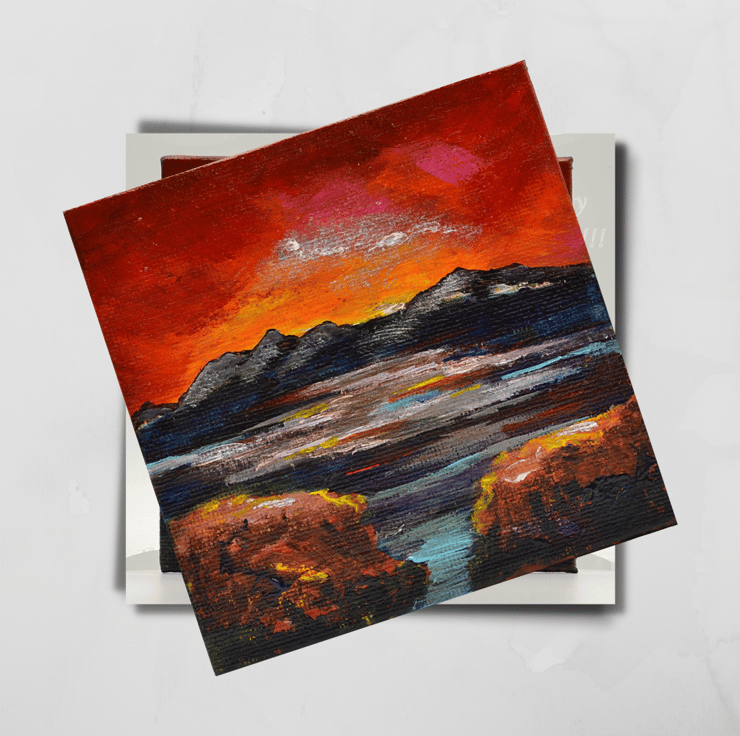 These mini canvases are perfect for brightening up any small space or to display with other miniature paintings.