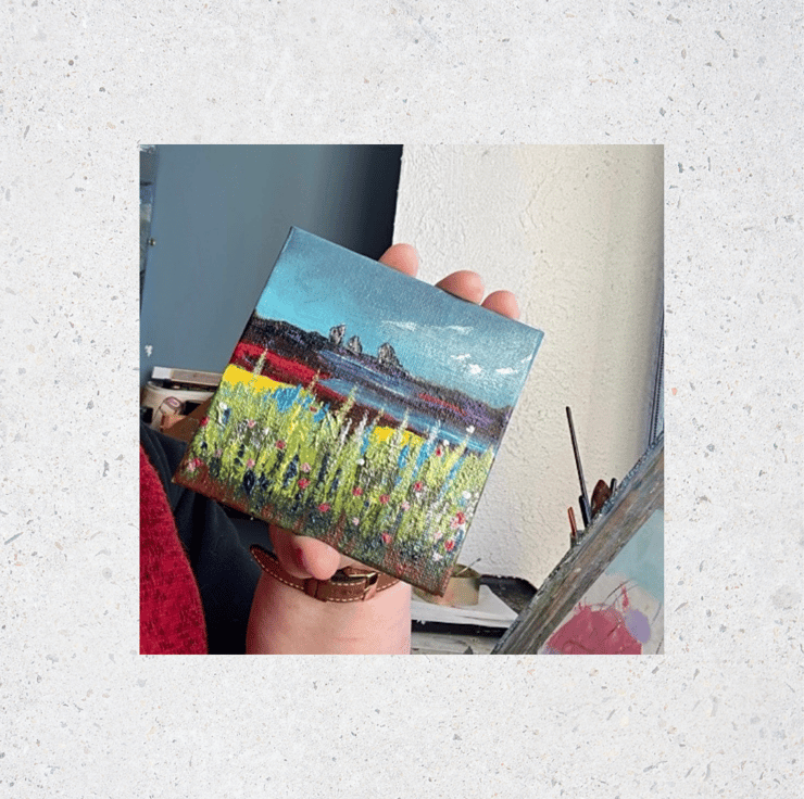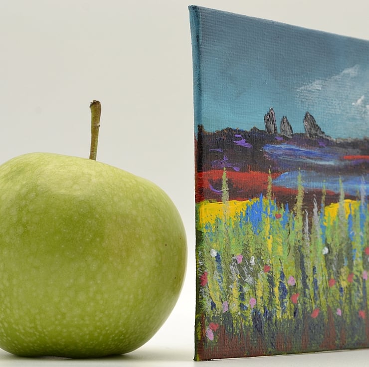 These mini canvases are perfect for brightening up any small space or to display with other miniature paintings.