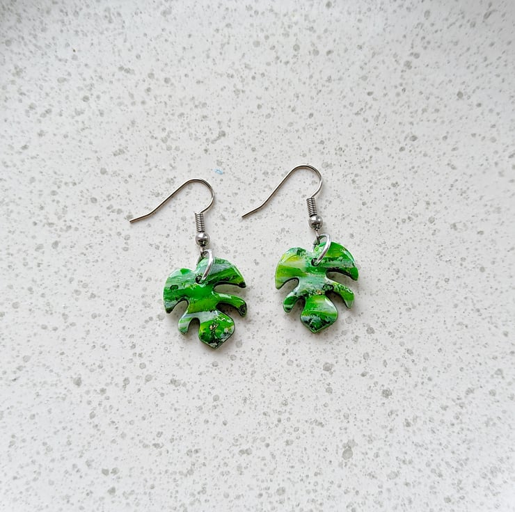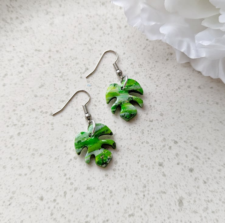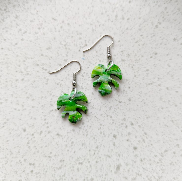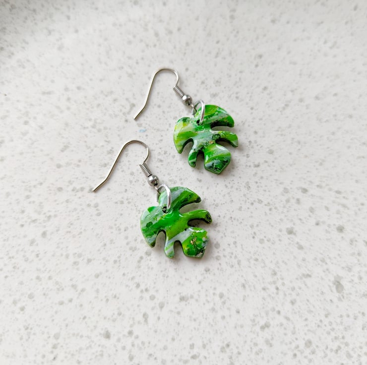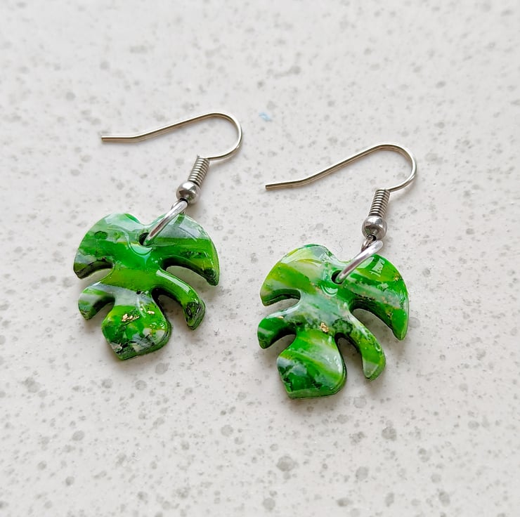 Three variant shades of green, with white and back flecks and micro bits of gold leaf.