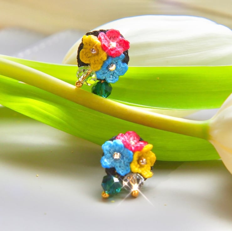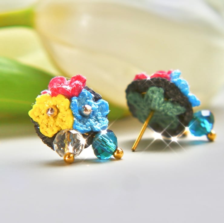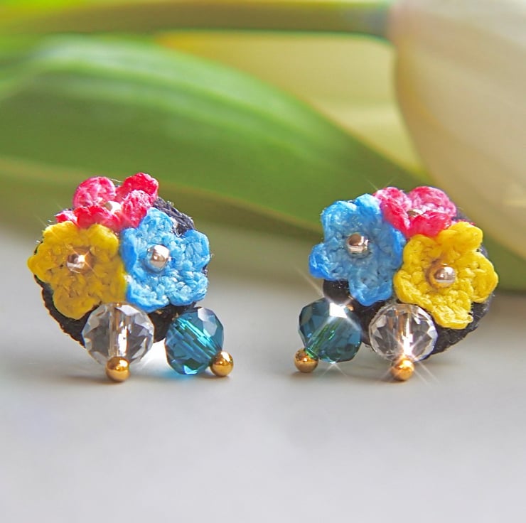 Earrings made with Embroidery Threads, 6mm Blue and Clear Crystal Glass Beads.