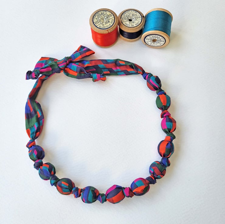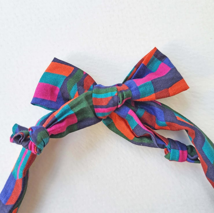 This Liberty print fabric necklace can be tied with a bow or a knot to vary the length from choker to mid chest. It is made out of Tana Lawn 100% cotton and so feels very soft next to your skin and has just the right weight to it to make it hang nicely.