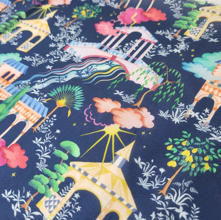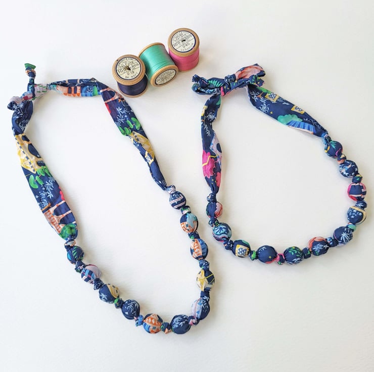 Navy Multi-Coloured Magical Gardens Liberty Print Fabric Necklace -Kingdom Print