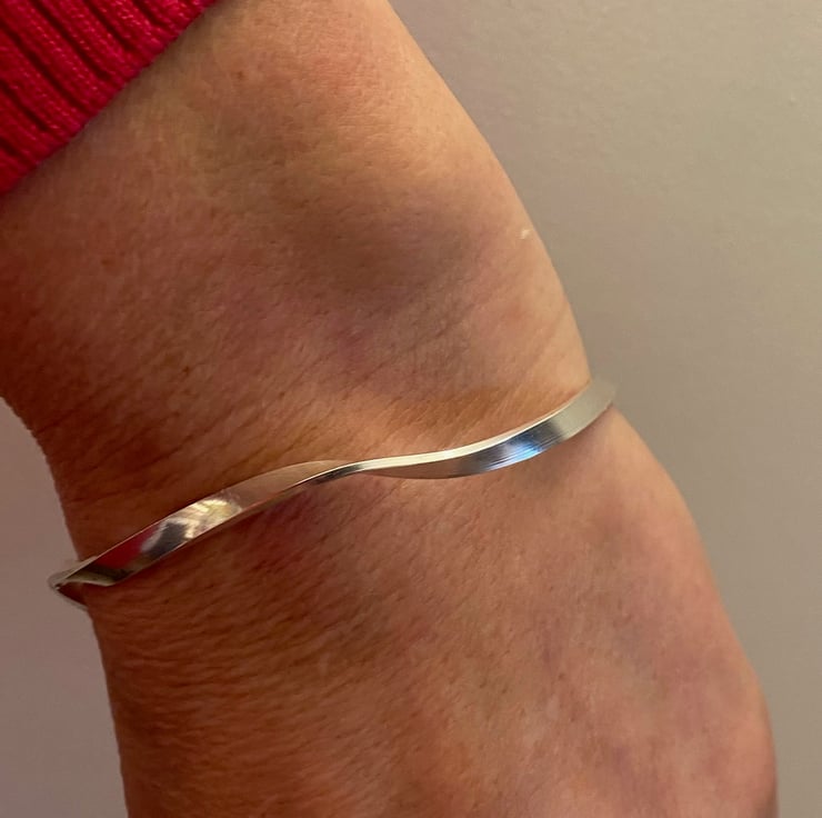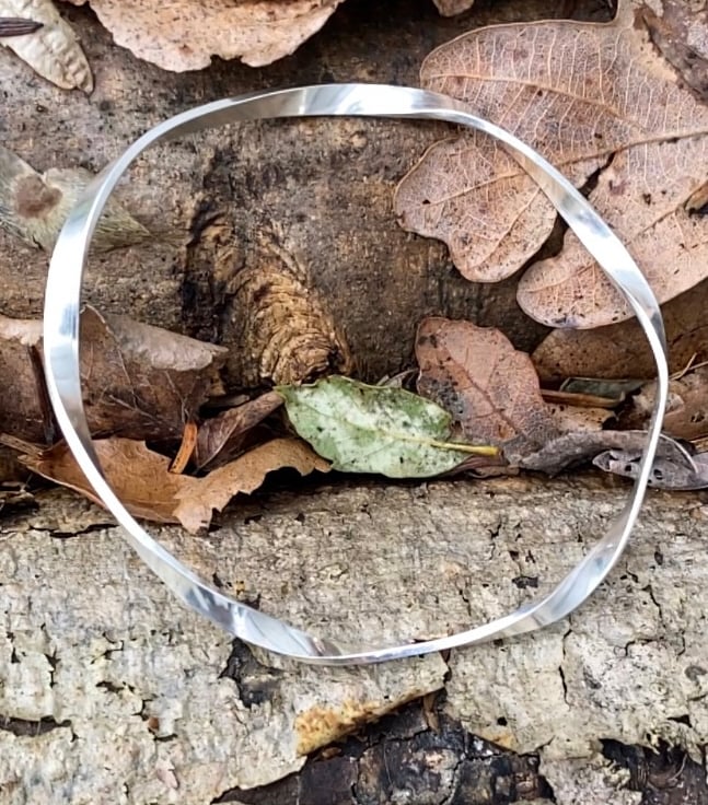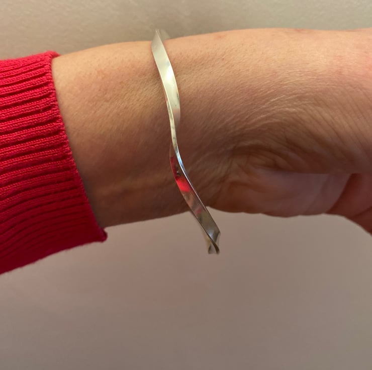 I love the way ths bangle twists, it reminds me of a piece of ribbon iin the wind. I find it very tactile and when I wear mine I often sit following the twists round and round with my fingers
