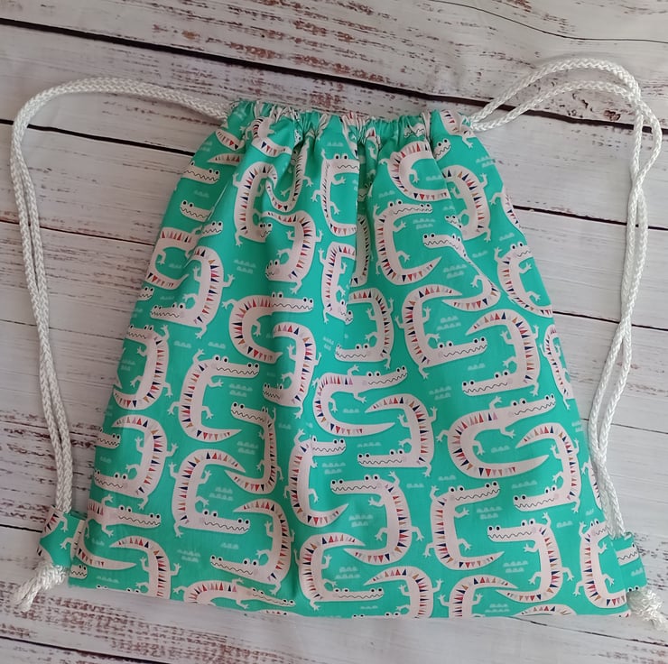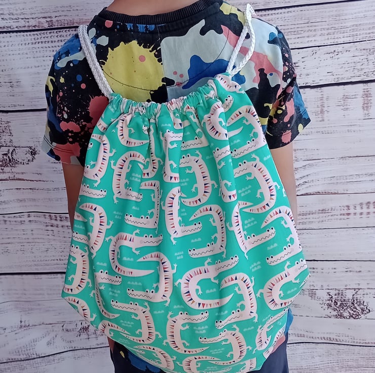 Lovely crocodile fabric backpack, fully lined with cotton fabric. Straps are adjustable.