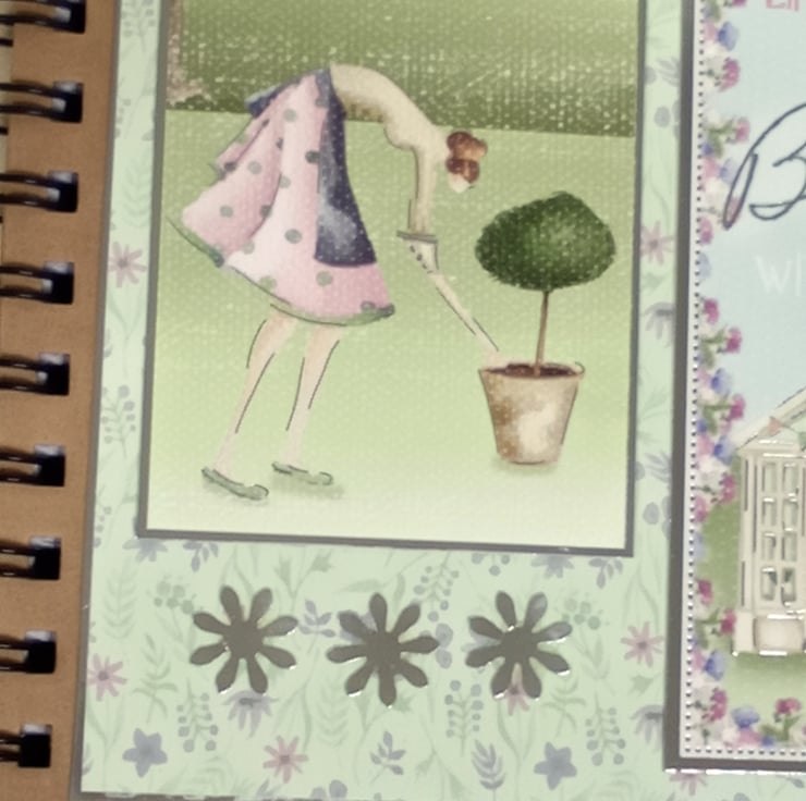 The base for this project is a hardback, spiral bound notebook. I have decorated using patterned papers and images with a gardening them making it ideal to use as a gardening journal.