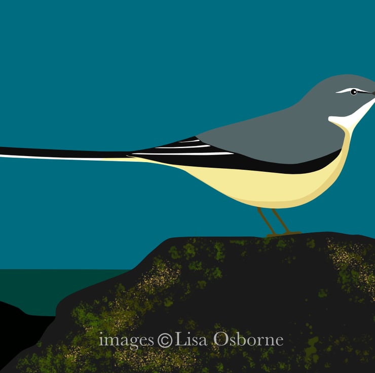 Grey wagtail - high quality, open edition print, with mount, of one of my digital bird illustrations showing a grey wagtail.