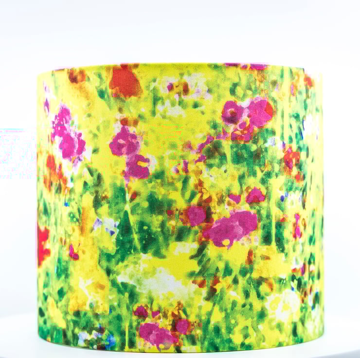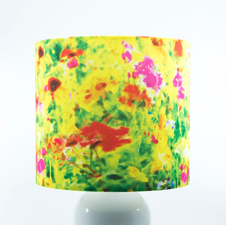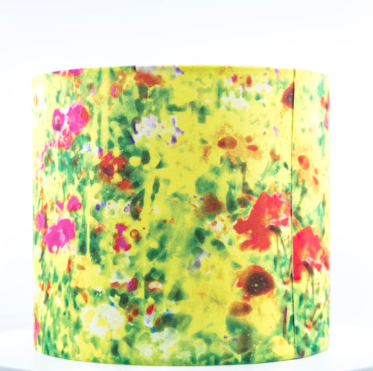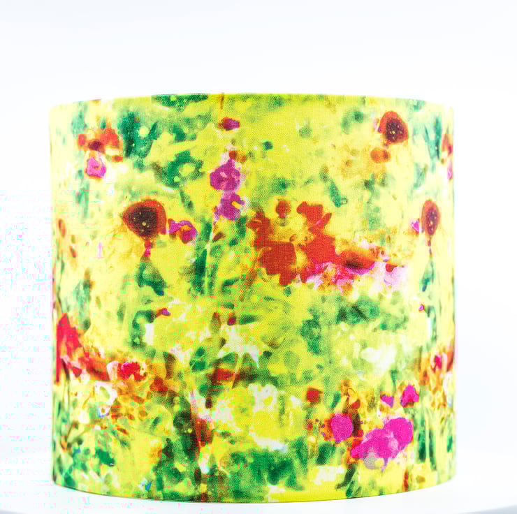 This unique fabric was designed by me. It started out as a photograph of a field or meadow of wildflowers taken in the summer. I then played around with the photograph to give it an impressionistic, watercolour feel and had it printed to size.