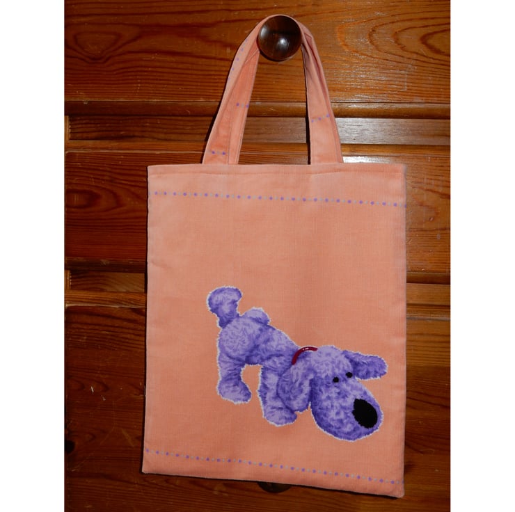 Tote bag peach with purple dog
