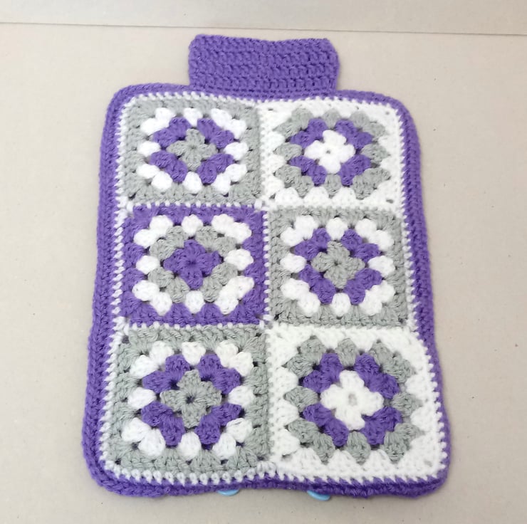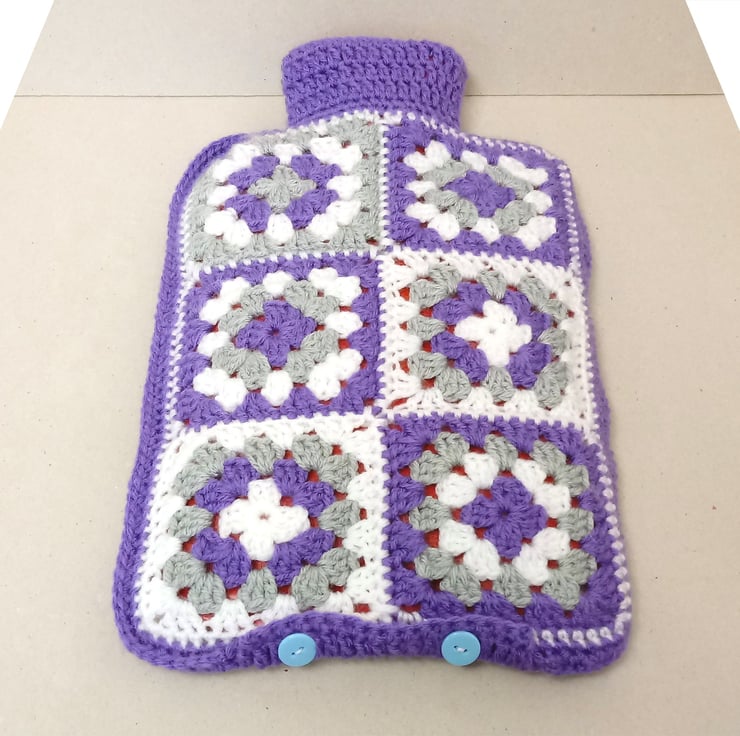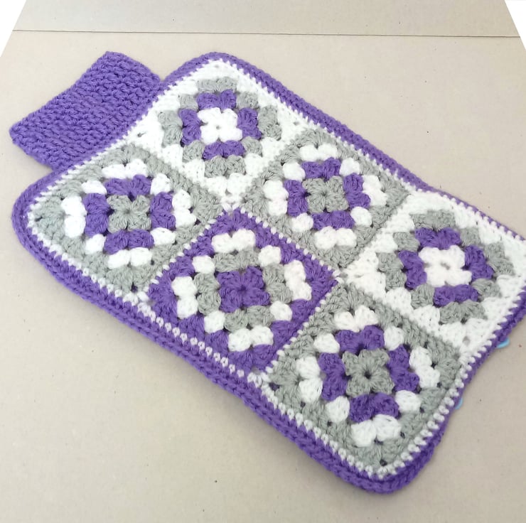 This is a lovely hot water bottle cover, crocheted in acrylic yarn.