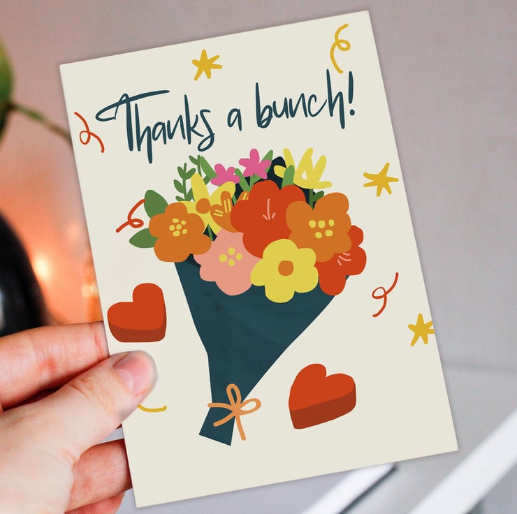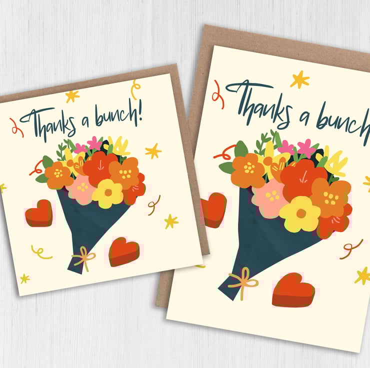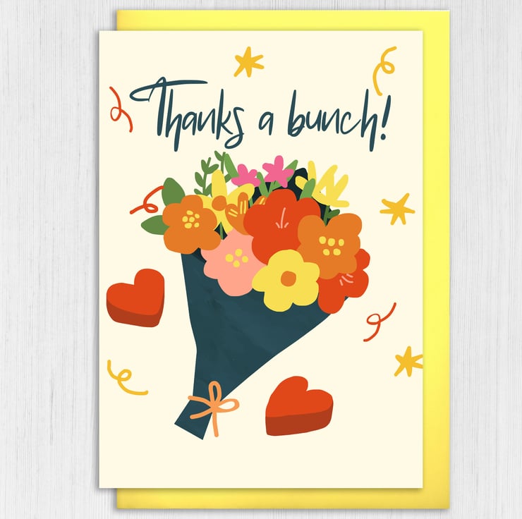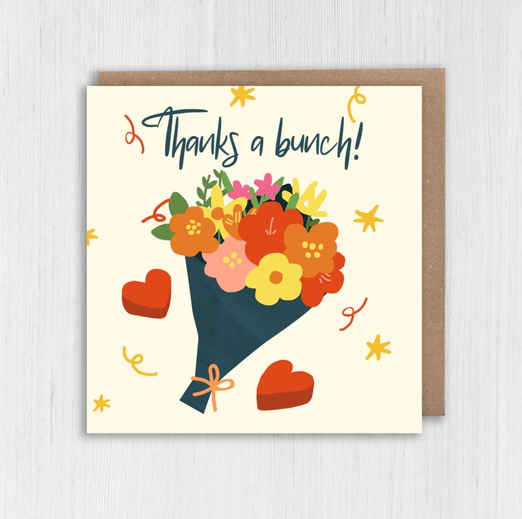 Cute, floral, flowers, flowery, bouquet thank you, thanks, gratitude card: Thanks a bunch! (Size A6/A5/A4/Square 6x6")