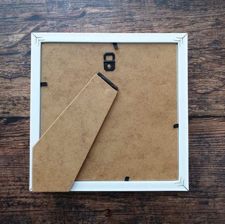 The frame measures approximately 17.5cm x 17.5cm that can be displayed either on a wall or a shelf.