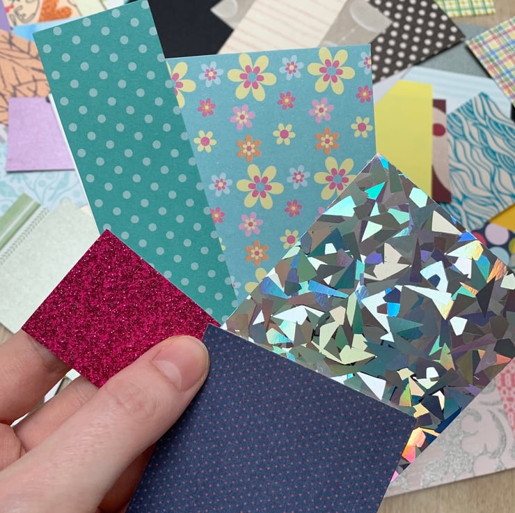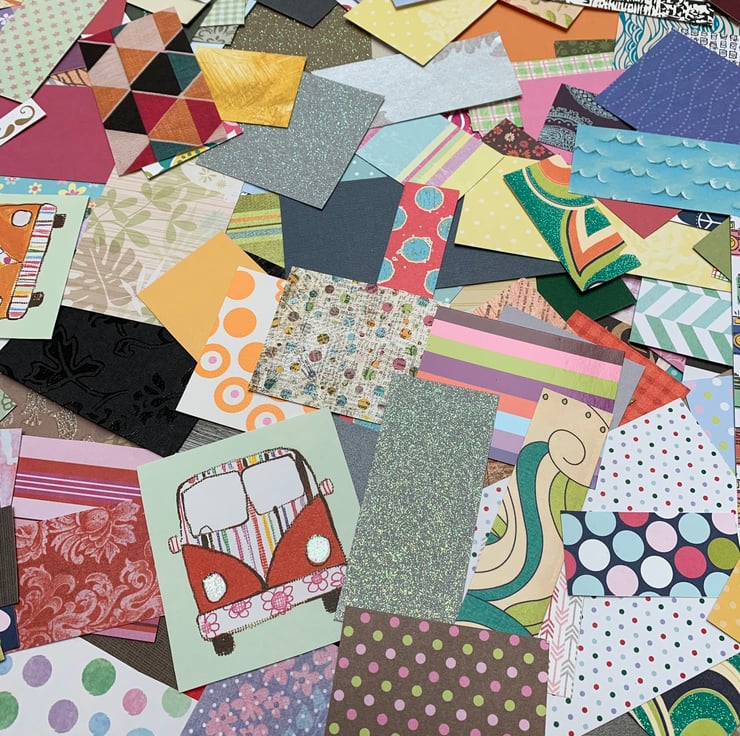 Over 300 pieces of scrap paper and card. This includes all kinds of scrapbooking paper and card, wallpaper and wrapping paper.