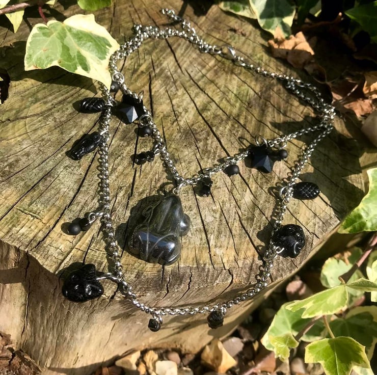 Features: Hematite Frog, Glass beads, Glass owls, Glass cats & Glass stars.