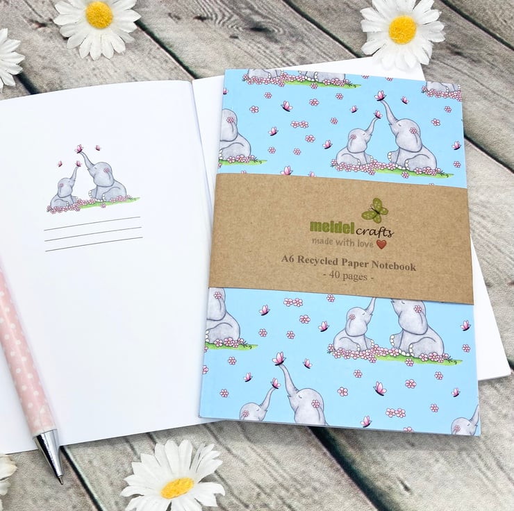 Notebook - A6 Recycled Paper Notebook - Mother & Baby Ellie - Plain Paper