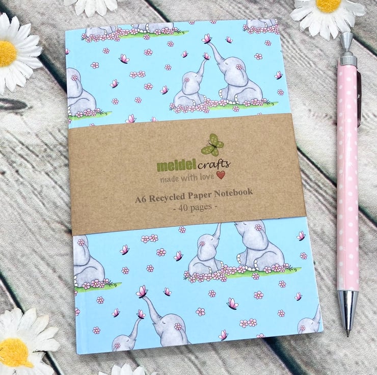 Each notebook has a recycled paper wrap around band. Your notepad will be wrapped in tissue paper and carefully packaged.