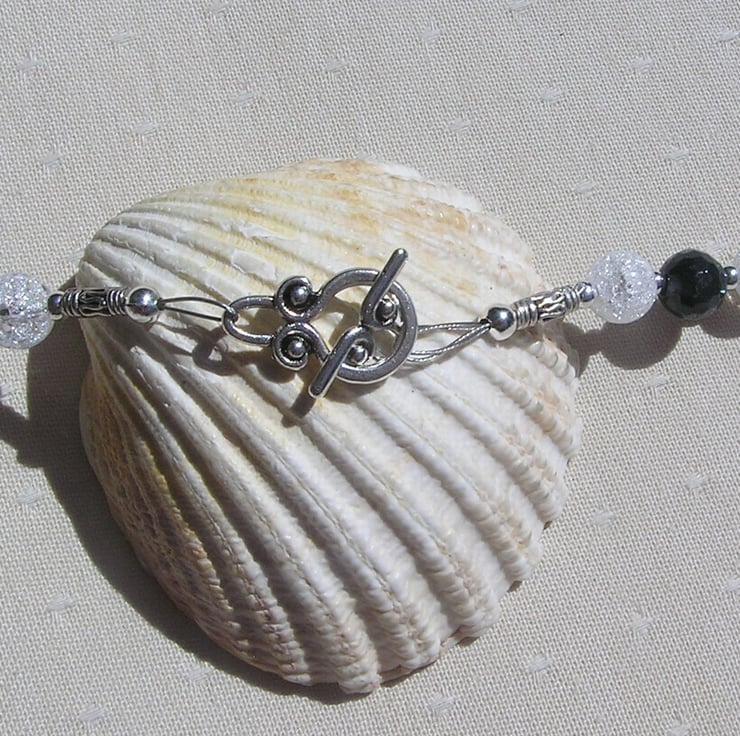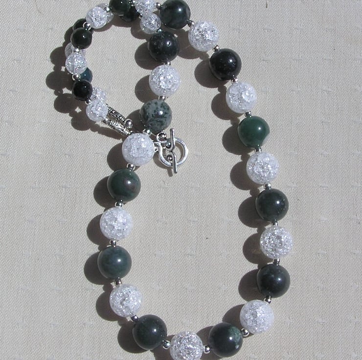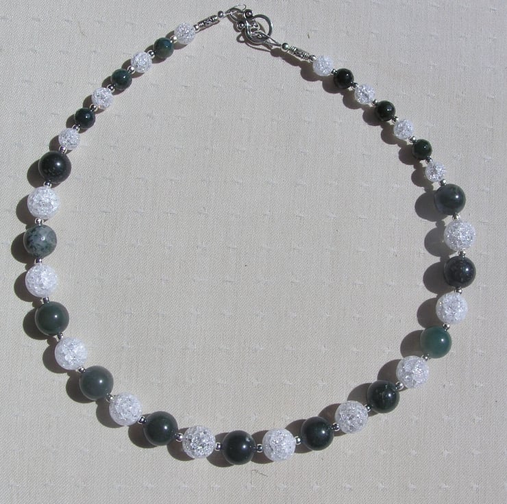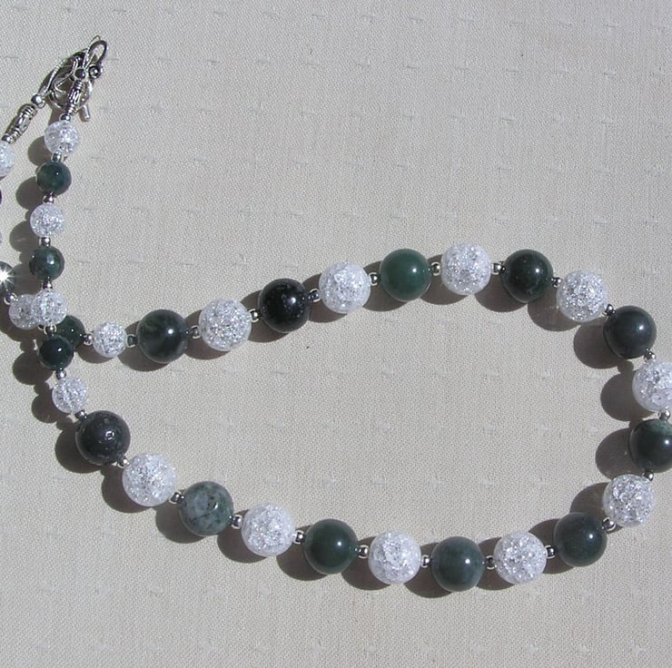 This Stunning Sumptuous Necklace is made from alternating Green Moss Agate and Crackled Clear Quartz chunky round beads and for that added extra sparkle tiny Silver spacer beads - a Gorgeous Cool combination that will look stunning either worn casually or with something more Elegant for a Special Evening out