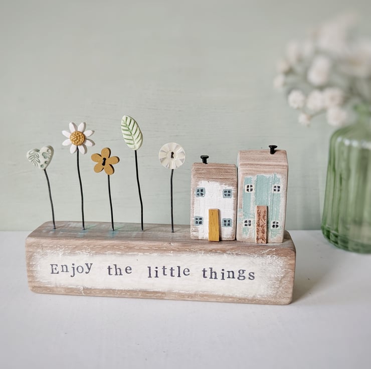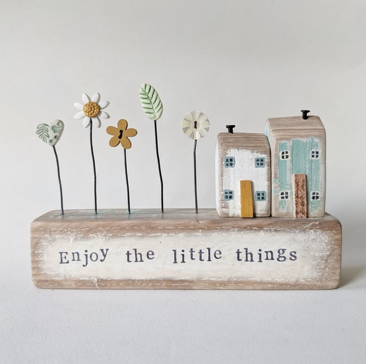 Hand stamped on the front are the words 'Enjoy the little things'.
